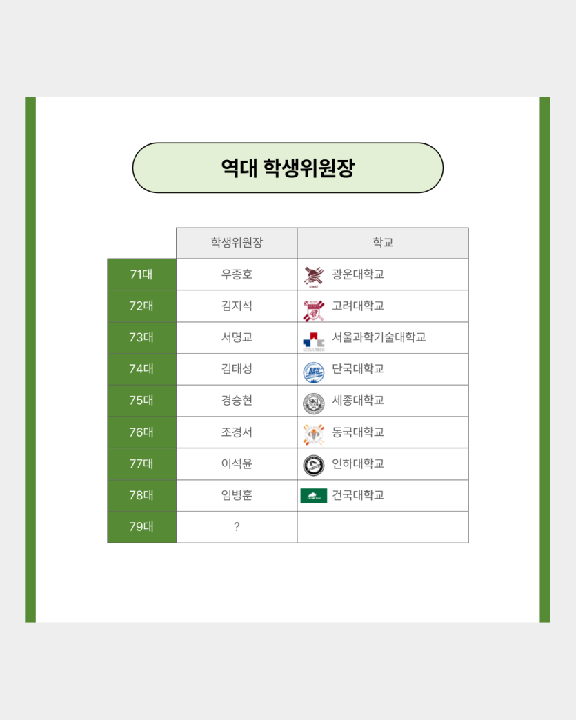 | 제목 | 79대 학생위원장 입후보 신청 | 작성일 | 26-01-12 23:55 |