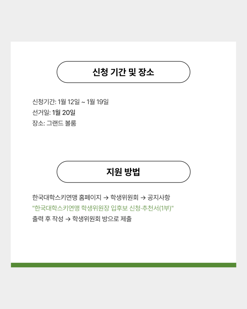 1. 공고명 : 제79대 한국대학스키연맹 학생위원장 선거 공고