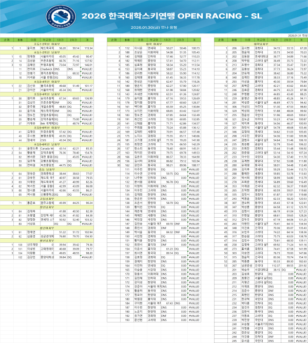 2026 한국대학스키연맹 open racing-SL 결과입니다.
