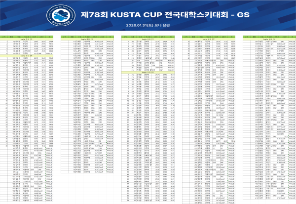 | 대회명 | 제78회 KUSTACUP 전국대학스키대회-GS | 작성일 | 26-02-02 17:21 |