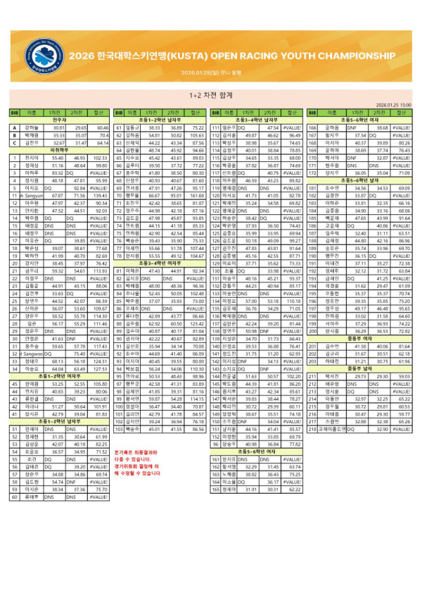 | 대회명 | 2026 한국대학스키연맹 OPEN RACING YOUTH CHAMPIONSHIP | 작성일 | 26-02-02 17:30 |